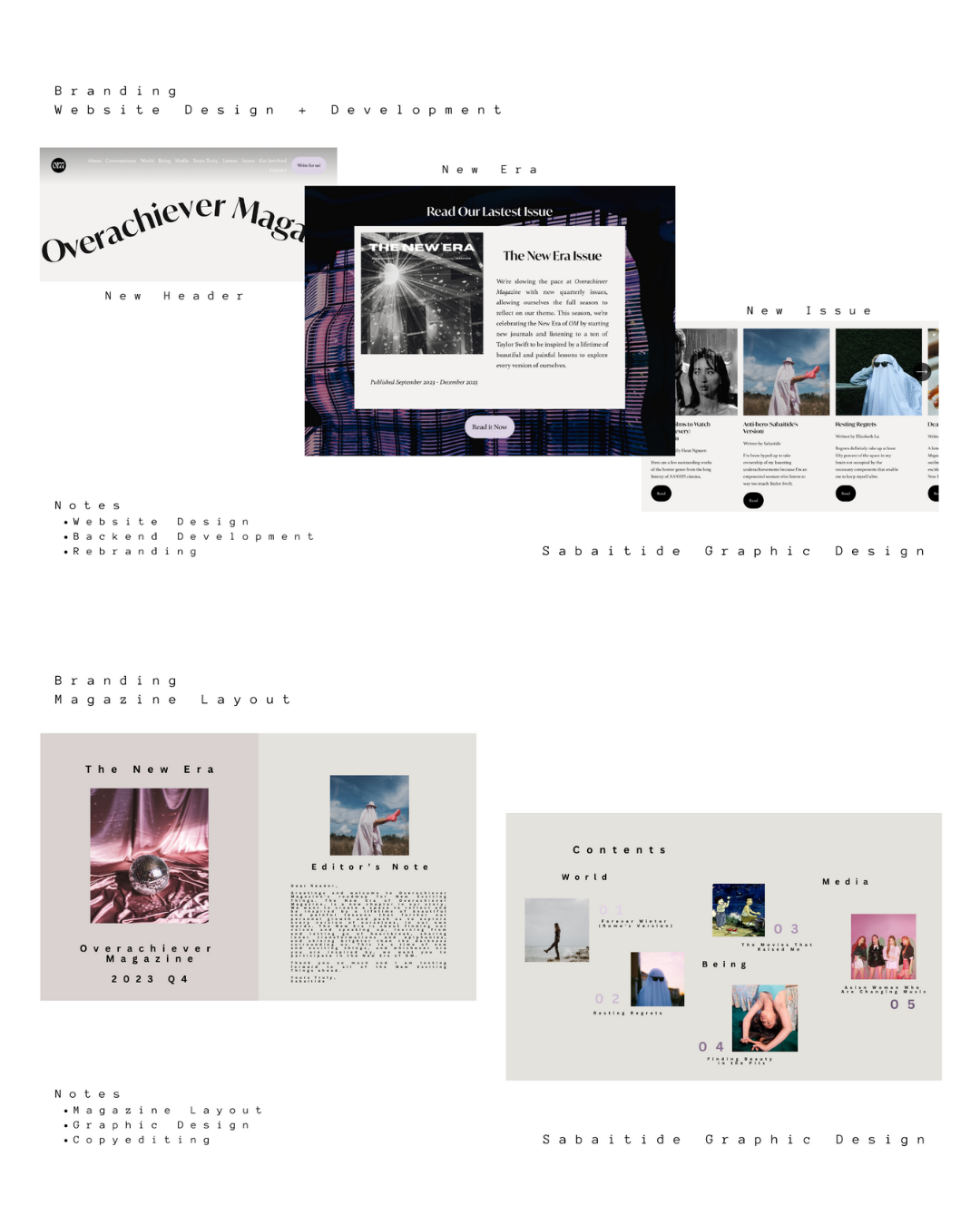As the current Editor-in-Chief of Overachiever Magazine, I have had the opportunity to become the creative leader of a digital magazine with an audience of over 10k. This collection of my portfolio features examples of website design, backend development, social media, branding, and more.